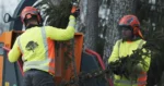 Arborist från Djupeskog Trädfällning beskär träd i Norrtälje med specialverktyg – fokus på trädfällning, trädbeskärning och trädvård.